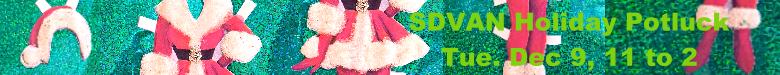 Annual SDVAN Holiday Pot Luck Party on Tue. Dec 10, 2019. Our thanks to Jack Ofield for his image on our full invitation card and the banner.