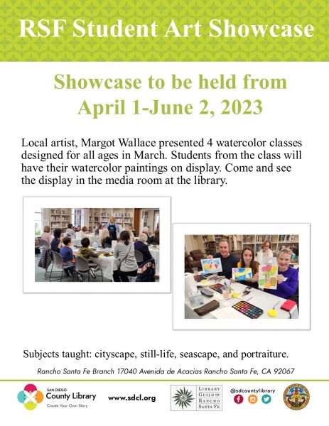RSF Art Students of all ages and levels of technique showcase their watercolor paintings of cityscapes, still life, seascapes, and portraits.